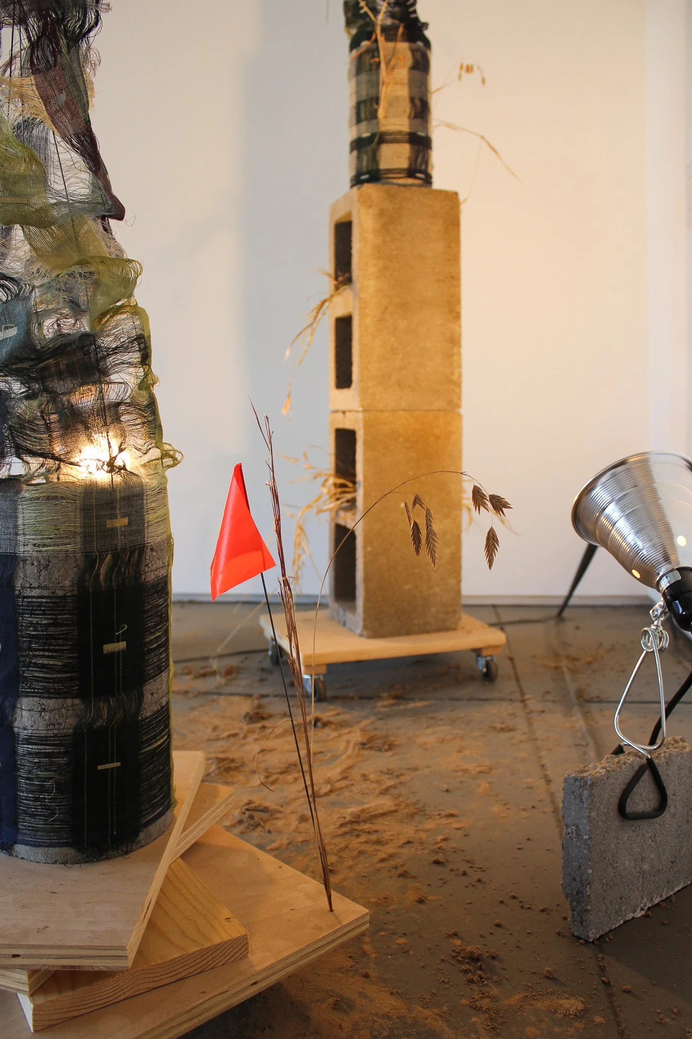 handwoven linen, silk, and stainless steel, found objects